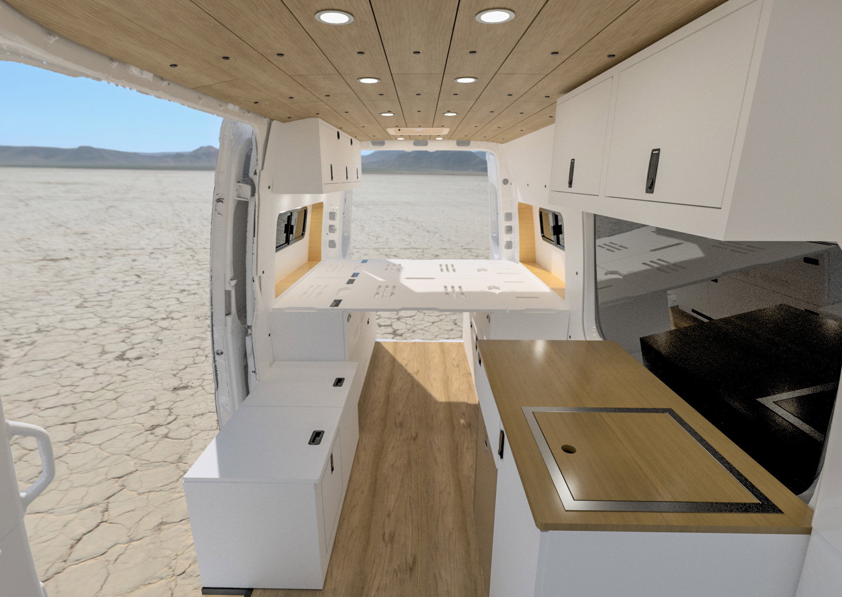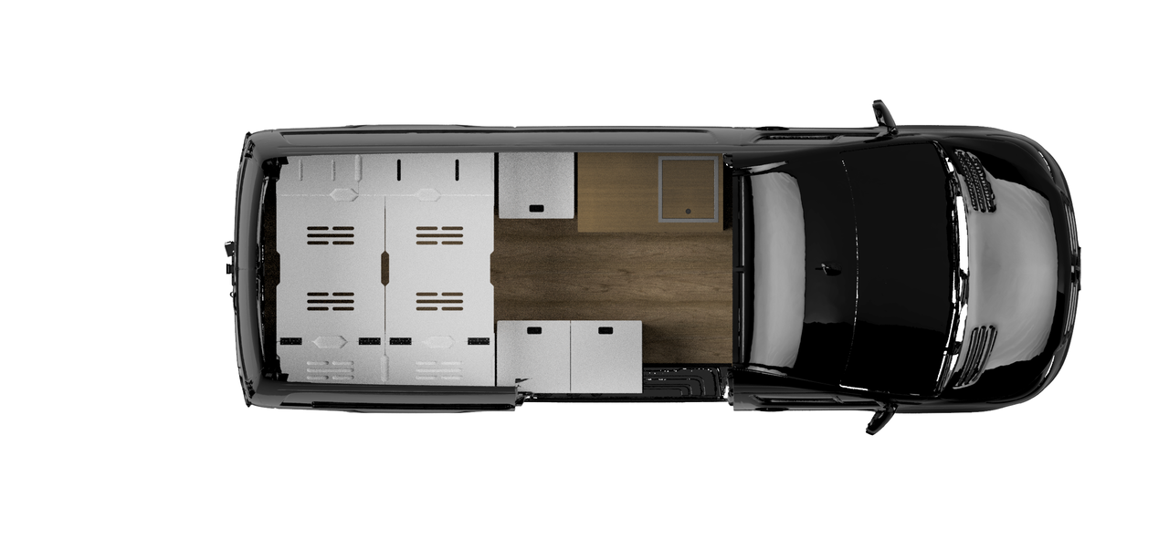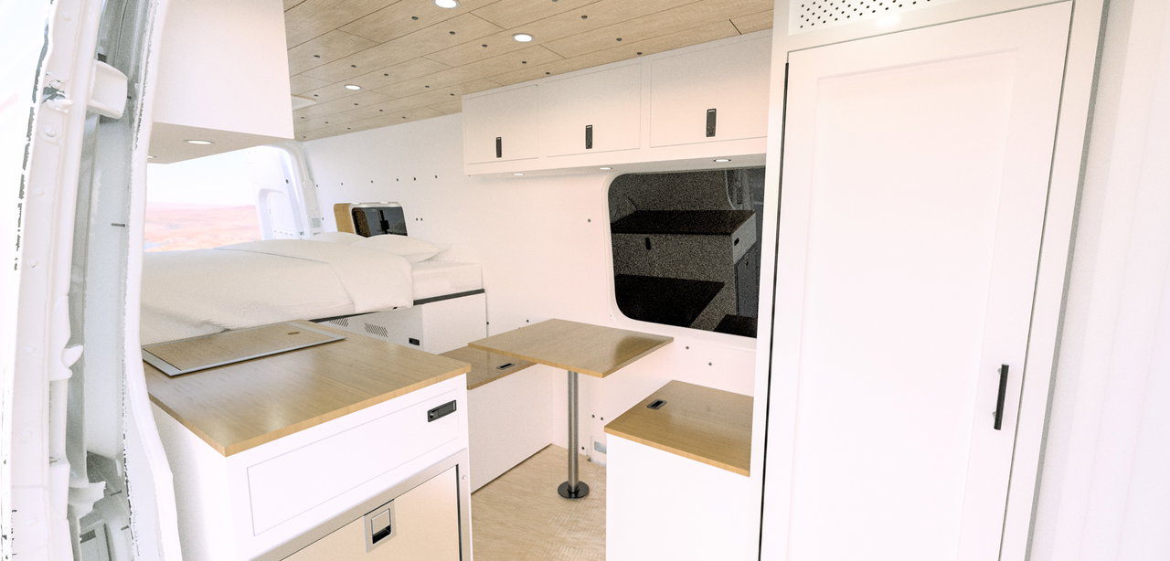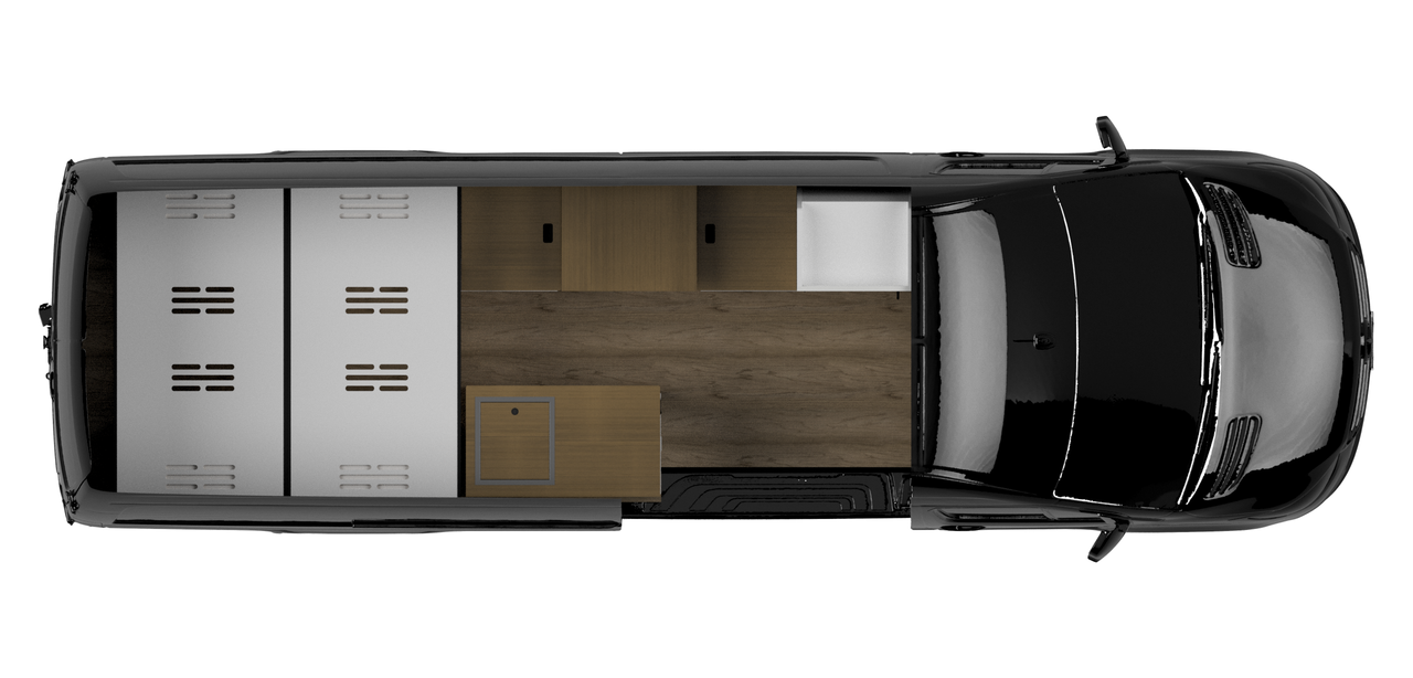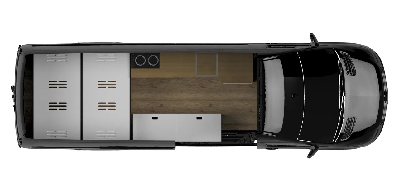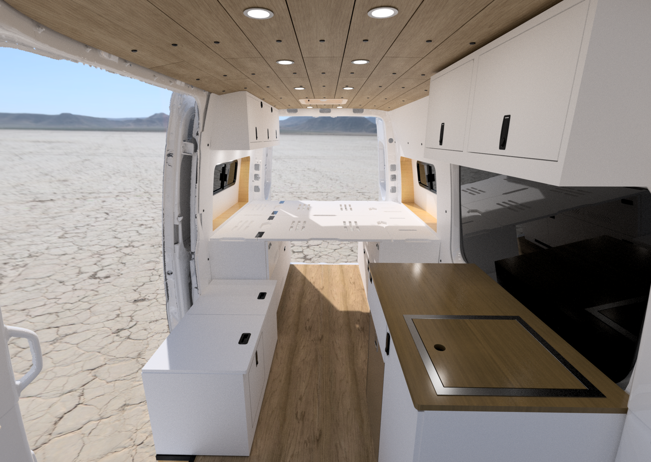 Every AdventureBumss build starts with a signature layout — fully customizable to fit how you live on the road. Base price $65,000. Van not included.